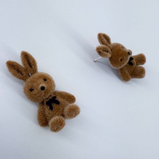 Velveteen Fluffy Bunny Silver Finish Stud Earrings
